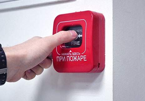 - Устройства ручного запуска – компоненты, запускающие систему при помощи человека. Это кнопки, вытяжные станции, станции для разбивания стекла.