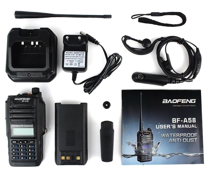 BAOFENG BF-A58 – универсальная радиостанция, которая отлично подойдет как для рыбалки, охоты и походов, так и для связи на строительных площадках и многих других объектах. Устройство работает в двух частотных диапазонах: 136-174MHz и 400-520MHz. Благодаря встроенному радиопередатчику мощностью 5W, рация способна передавать сигнал на расстояние до 12 километров в зависимости от рельефа местности.