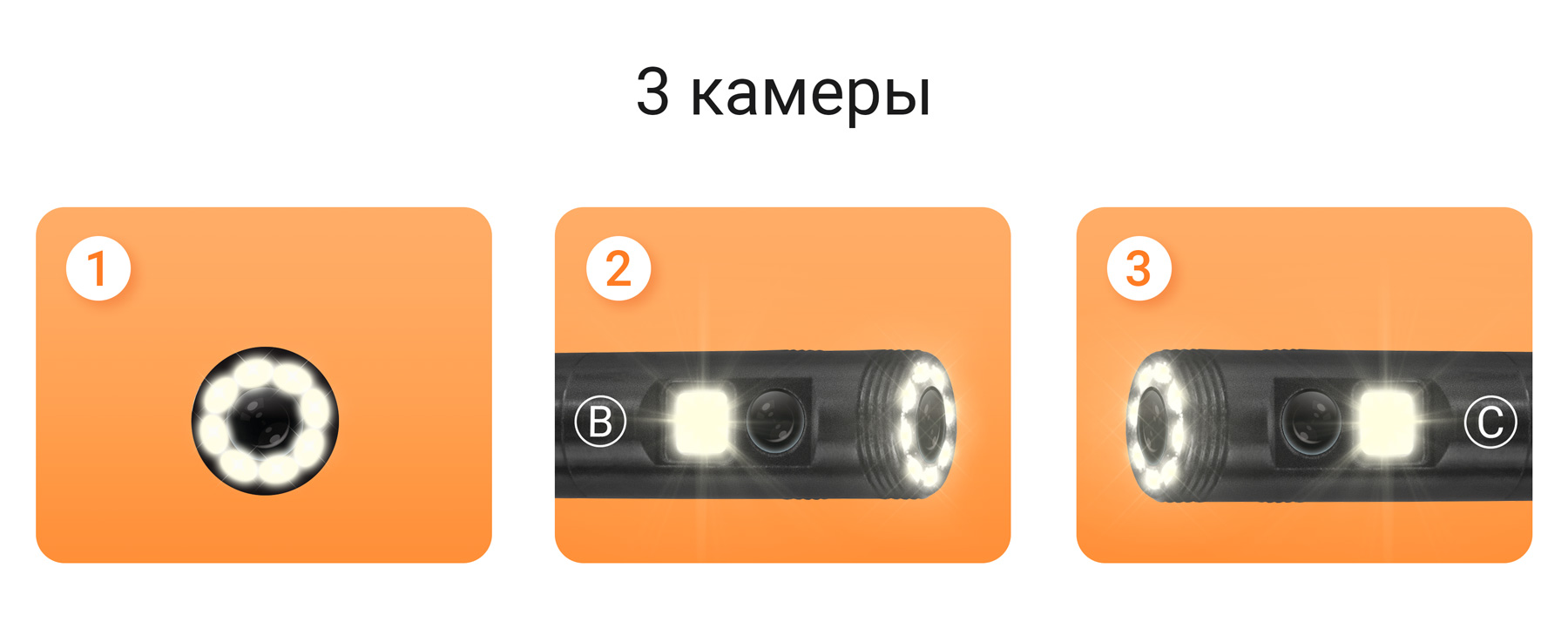 CARCAM ENDO-202M - универсальный эндоскоп, который позволит вам провести осмотр труднодоступных мест моторных отсеков автомобилей, канализаций, водопроводов, вентиляции, а также многих других коммуникаций и агрегатов. Устройство оснащено цветным ЖК-дисплеем 5 дюймов и гибким зондом длиной 2 метра. На конце зонда установлены три водонепроницаемые камеры с LED-подсветкой, которые ведут съемку в разрешении 1920x1080p. Устройство оснащено слотом для MicroSD карт памяти. Встроенный аккумулятор обладает емкостью 2600 мАч и обеспечивает 3-4 часа непрерывной работы эндоскопа.