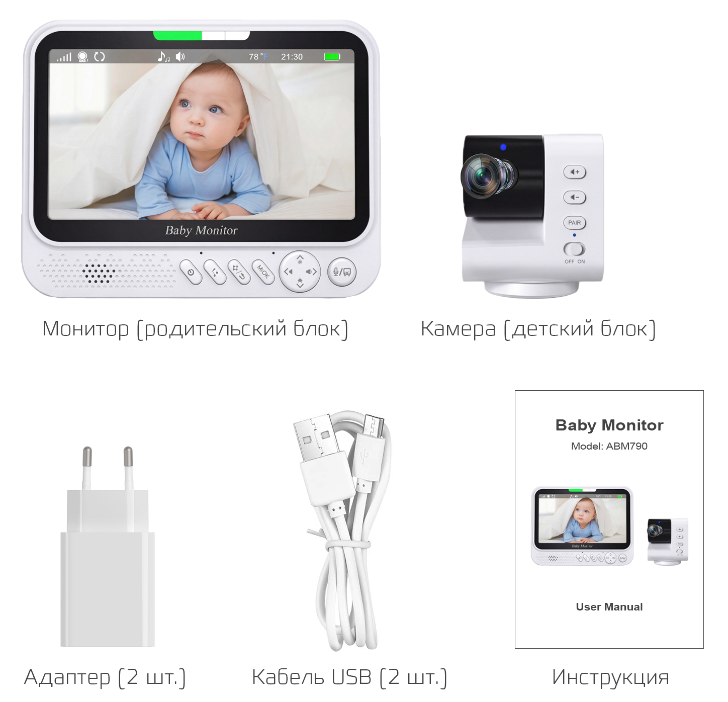 CARCAM Wireless Baby Monitor PTZ Camera (CCABM790) - это цифровая видеоняня, которая включает в себя монитор с 7-дюймовым HD-дисплеем (родительский блок) и поворотную камеру с разрешением 1280х720p и углом обзора 65° (детский блок). Данный комплект станет незаменимым помощником для родителей маленьких детей. Благодаря функции голосовой активации VOX и двусторонней аудиосвязи вы можете четко слышать своего малыша и в случае чего поговорить с ним, даже находясь в другой комнате. Камера вращается на 355° по горизонтали и на 65° по вертикали. Установите камеру в удобном месте и используйте монитор для постоянного наблюдения за ребенком. Подключите камеру к монитору по беспроводной сети 2.4 ГГц, дальность действия блоков составляет до 300 м. В детском блоке имеется встроенный датчик температуры, который напрямую отправляет предупреждение на родительский блок, что позволит обеспечить ребенку комфортную среду для сна. Благодаря встроенному инфракрасному светодиодному фонарю вы сможете четко видеть своего малыша даже ночью. Для спокойного и крепкого сна ребенка в видеоняне имеется 8 колыбельных мелодий.