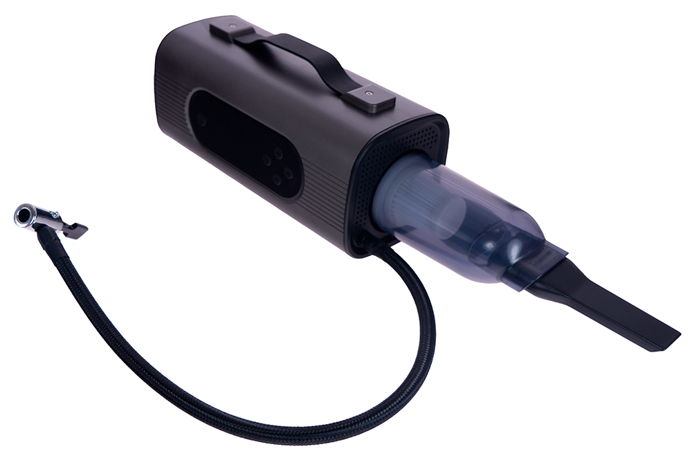 Пусковое устройство, Компрессор, Пылесос, Воздуходувка, Датчик давления в шинах, Внешний аккумулятор, Фонарик, Вакууматор |