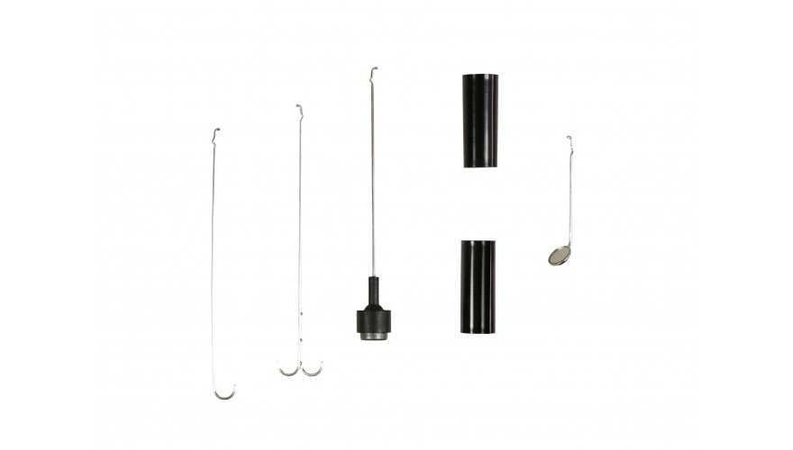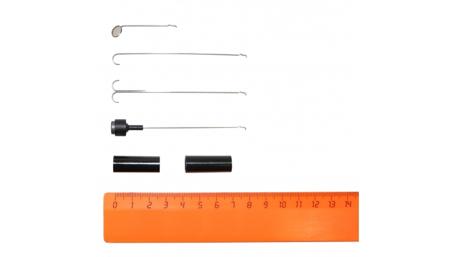 В комплект входят 4 специальные насадки: зеркало, магнит, крючок односторонний, крючок двухсторонний.