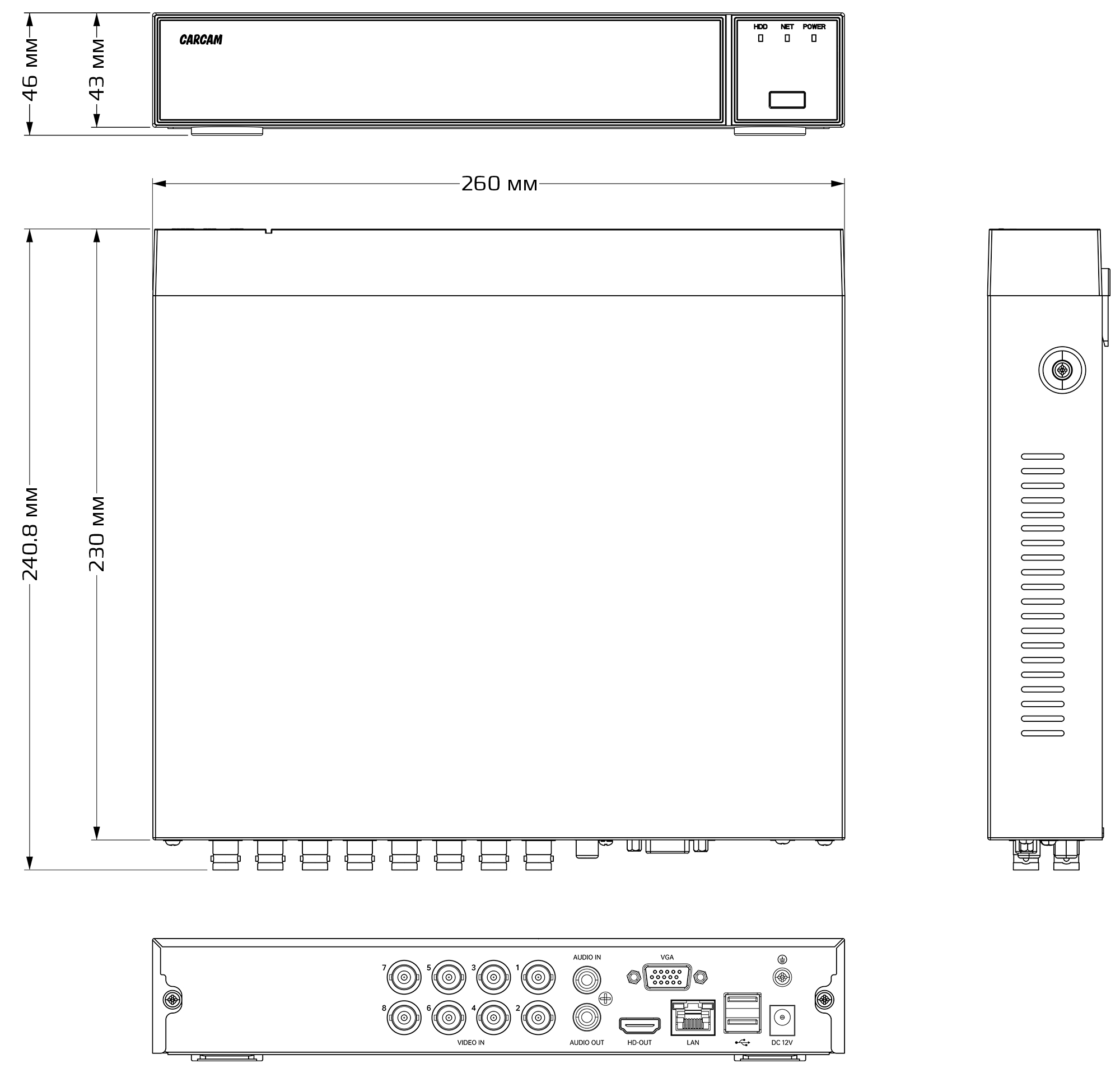 Видеорегистратор оснащен интерфейсами VGA и HDMI. Вы сможете подключить к устройству большинство современных мониторов и телевизоров.