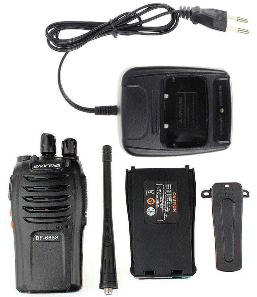 Комплект раций Baofeng BF-666S/2 - комплект из 2 портативных раций Baofeng BF-666S, которые отлично подойдут не только для работы, но и для активного отдыха и туризма. Радиус действия раций может достигать 10 километров на открытой местности. Компактные габариты и вес в 166 грамм обеспечивают максимально удобное использование рации практически в любой сфере деятельности.