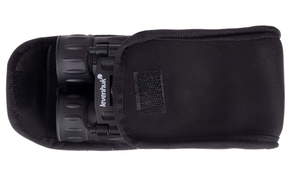 В конструкции модели Levenhuk Atom 10x25 предусмотрено все, что нужно для комфортного использования: межзрачковое расстояние регулируется, есть кольцо коррекции диоптрий, а окуляры снабжены мягкими резиновыми наглазниками. Резиновое покрытие предотвращает попадание грязи и пыли внутрь прибора. Благодаря рельефной поверхности бинокль не выскальзывает из рук.