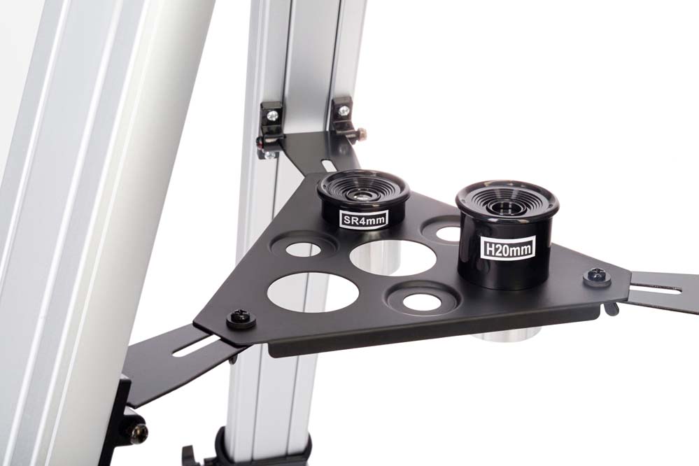 Оптическая схема – ахроматический рефрактор со стеклянными линзами, на оптические элементы нанесено антибликовое покрытие, а апертура составляет 70 мм. Объектив хорошо собирает свет, отлично работает по наземным объектам и достойно проявляет себя при визуальных наблюдениях космоса. Оптическая труба установлена на вилочную азимутальную монтировку, которая позволяет быстро наводить телескоп на нужные объекты. Микровинт на вертикальной оси дает возможность проводить более точную наводку.Тренога выполнена из алюминия, она надежна и устойчива. Высоту ножек можно регулировать, есть полочка для аксессуаров. Обратите внимание: несмотря на то, что Levenhuk Blitz 70 BASE – модель начального уровня, в ней используется фокусер 1,25 дюйма. Это означает, что на телескоп можно устанавливать большинство оптических аксессуаров, которые широко представлены в продаже. С их помощью можно расширить свой наблюдательный опыт и приумножить возможности телескопа.