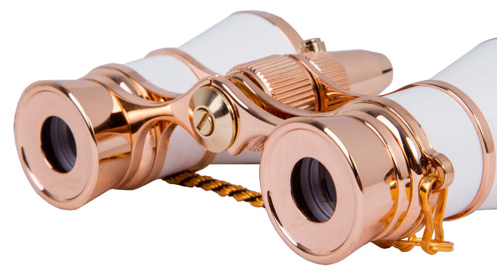 Кроме того театральный бинокль Levenhuk Broadway 325F обладает роскошным внешним видом. Металлический корпус молочно-белого цвета с золочеными элементами выглядит изысканно и благородно. Витая черно-золотистая цепочка для ношения бинокля на шее дополняет этот образ. Бинокль выполнен с использованием высококачественной оптики. Линзы из оптического стекла с многослойным просветлением обеспечивают яркое и контрастное изображение.Механизм центральной фокусировки облегчает настройку резкости – изображение настраивается в обоих окулярах одновременно. Межзрачковое расстояние регулируется в широких пределах, что позволяет настроить бинокль в соответствии с индивидуальными особенностями каждого пользователя.