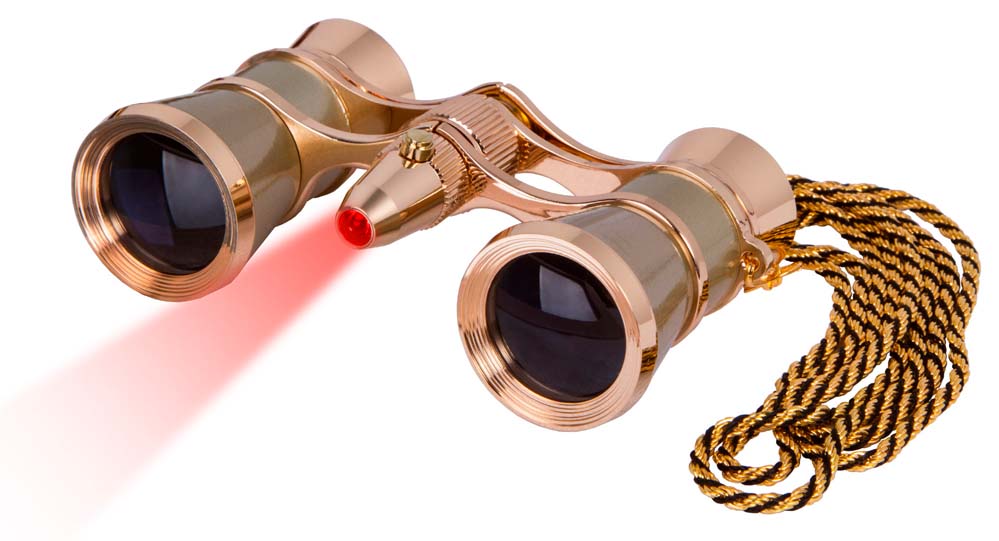 Бинокль имеет встроенную светодиодную подсветку – узкий и яркий луч может быть полезен в темном зрительном зале, при этом он не помешает вашим соседям, и не будет отвлекать их от спектакля.