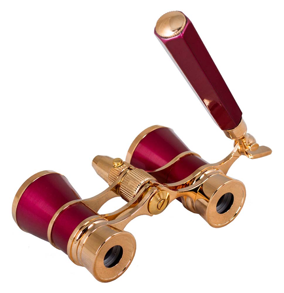 Levenhuk Broadway 325N красный – классический театральный бинокль, снабженный ручкой для удобства использования – это отличный аксессуар к вечернему платью, который не только красив, но и функционален. Бинокль Levenhuk Broadway 325N сочетает в себе классический дизайн и современные технологии, изысканный внешний вид и доступную цену. Металлический корпус окрашен в благородный красный цвет (цвет красного бургундского вина), а отдельные элементы имеют напыление под золото.