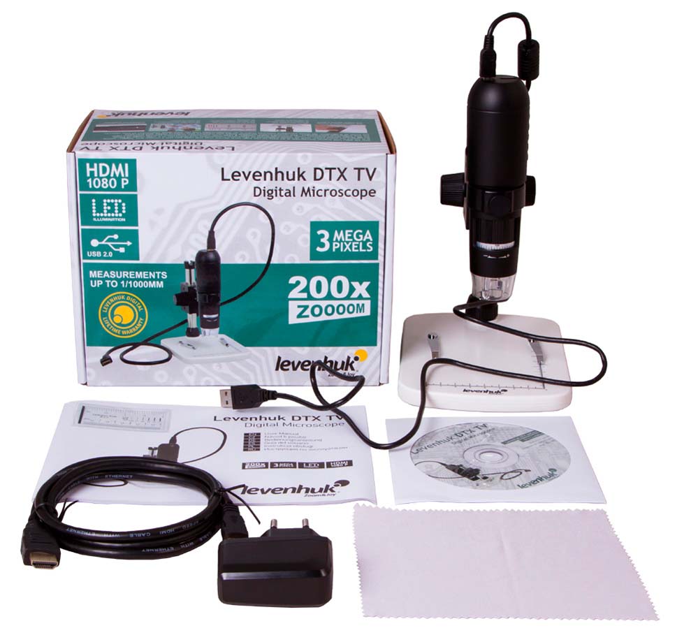 Levenhuk DTX TV – микроскоп, цифровой увеличительный прибор, который может выводить изображение на экран компьютера или телевизор. В комплекте идут USB и HDMI-кабели – вы можете выбрать наиболее удобный для вас вид подключения. В режиме реального времени микроскоп передает картинку с объектива на любой внешний экран. Levenhuk DTX TV – отличный выбор для учебы, хобби и работы.