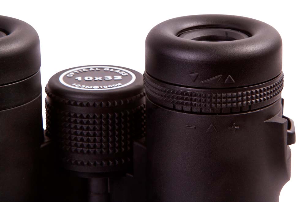 Оптика построена на базе roof-призм и линз с многослойным просветлением. Все оптические элементы сделаны из стекла BK-7. Передаваемая биноклем картинка четкая, контрастная, детализированная. Цвета естественные и яркие. У правого окуляра есть кольцо диоптрийной коррекции, положение поворотно-выдвижных наглазников можно регулировать. Резкость легко настраивается прямо во время наблюдений – простым поворотом центрального барабана фокусировки.Бинокль Levenhuk Karma BASE 10x32 – это компактная модель, но его можно устанавливать на штатив. Сам штатив в комплект поставки не входит.