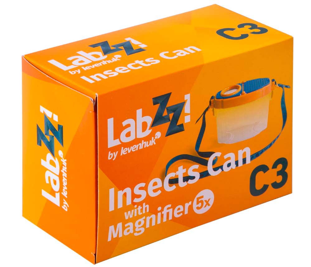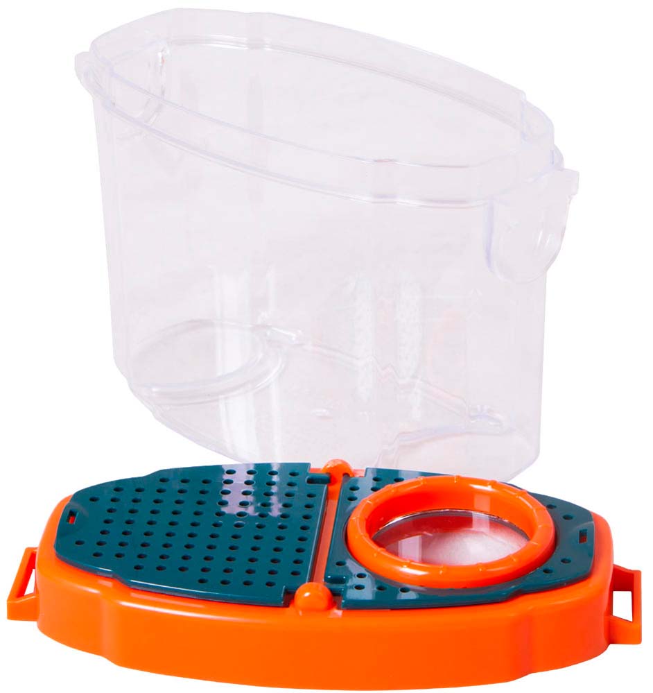 Levenhuk LabZZ C3 – лупа-стакан, настоящий исследовательский инструмент для маленького ученого. Она представляет собой прозрачный бокс с крышкой, в которую встроена 5-кратная лупа. Внутрь бокса можно помещать разные предметы – минералы, части растений, листья деревьев. А затем легко изучать их с увеличением. В стакан можно поселить и насекомых или лягушат. Или заполнить бокс водой из пруда и наблюдать через прозрачные стенки за водными жителями – рыбками и головастиками.