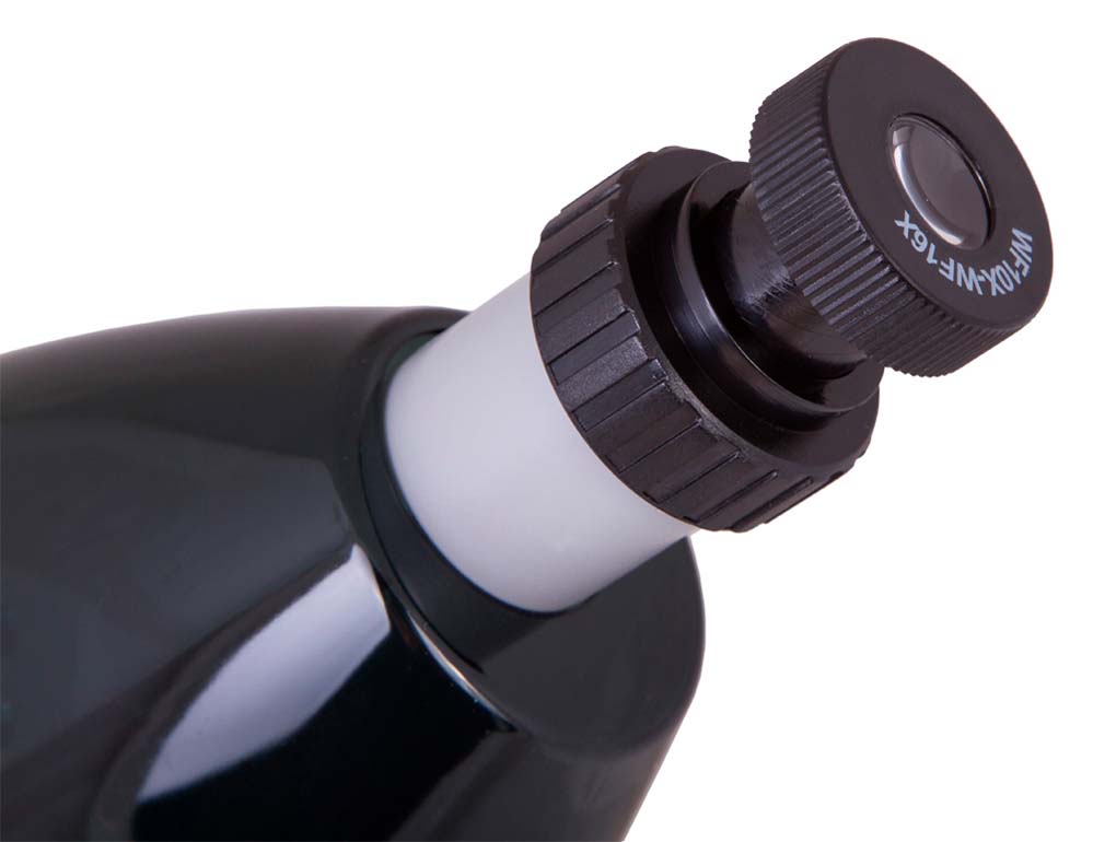 Хотя микроскоп и создан для детей, его оптика не уступает многим «взрослым» моделям. Микроскоп снабжен тремя объективами: 4x, 10x и 40x. Чтобы сменить объектив, нужно просто повернуть револьверное устройство. Уникальная особенность этой модели – выдвижной окуляр с двумя степенями увеличения (10 и 16 крат). Пользоваться таким окуляром очень просто. К тому же, это удобнее, чем два обычных окуляра. Микроскоп обеспечивает целых шесть степеней увеличения: 40, 64, 100, 160, 400 и 640 крат!