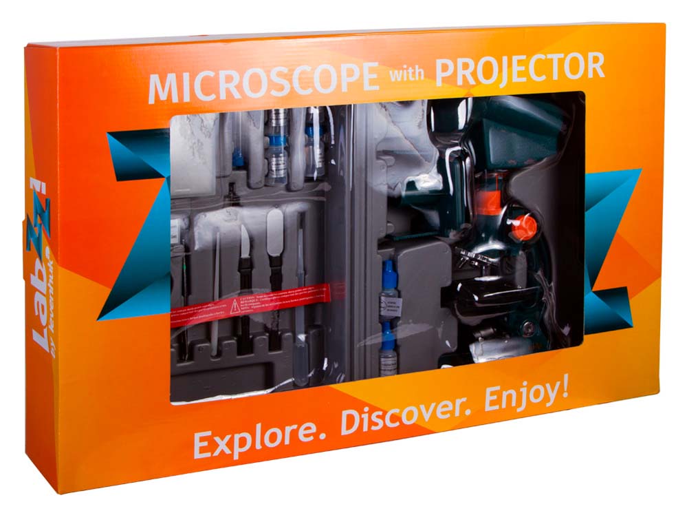 Микроскоп Levenhuk LabZZ M3: особенности и использованиеОтличие модели от других детских микроскопов – окулярный проектор. Он позволяет проецировать изображения микропрепаратов с объектива микроскопа на любую ровную поверхность – стену, стол или потолок. Так ребенок сможет демонстрировать свои научные достижения друзьям и семье.