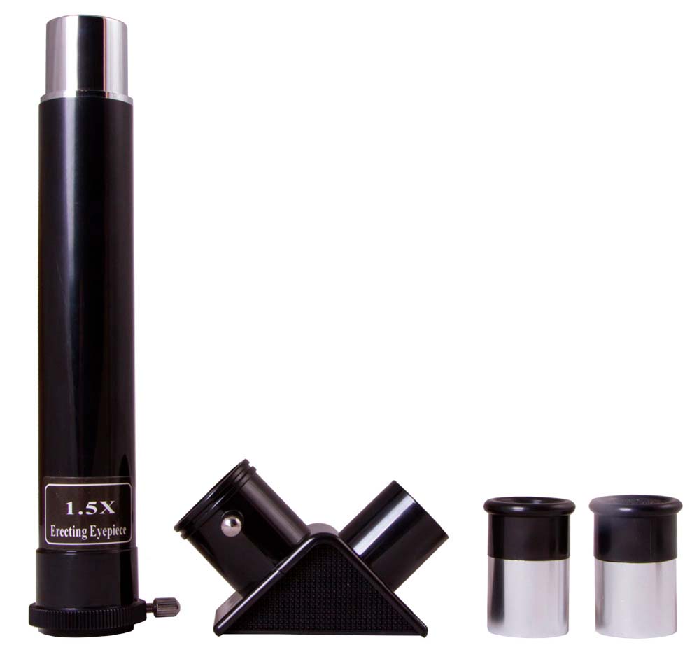 В комплект поставки включены два окуляра разной кратности и оборачивающий окуляр. Максимальное увеличение «из коробки» составляет 40 крат. Такого увеличения хватит для раскрытия множества интригующих тайн космоса.