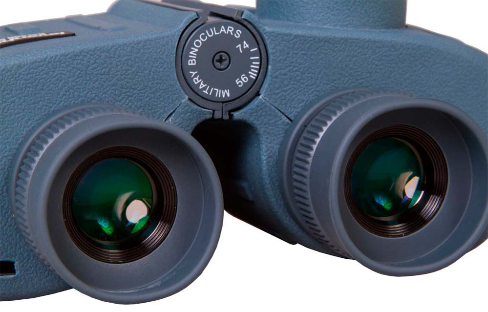 В корпус бинокля встроены компас и дальномер. Шкалы приборов находятся в окулярах. Компас показывает направление на объект, выраженное в градусах угла. Север находится на отметке 360°, юг – 180°, восток – 90° и запад – 270°. Подсветка компаса питается от батареек.