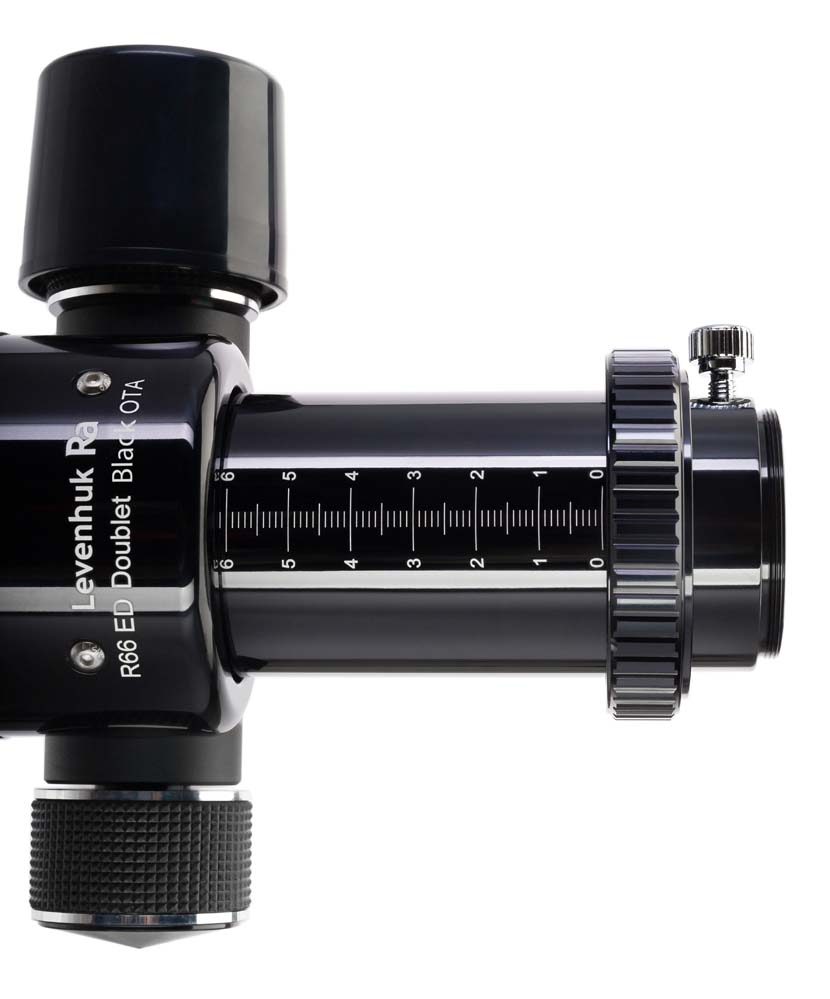 Телескоп представляет собой апохроматический рефрактор с просветленной низкодисперсионной оптикой. В передаваемой им картинке отсутствуют проявления хроматизма: убраны сферохроматизм и вторичные аберрации. Эту ОТА лучше всего использовать по протяженным объектам, так как она обеспечивает хороший обзор и приятную глазу картинку. В наблюдениях также помогает двухскоростной фокусер Крейфорда, который позволяет очень точно и плавно настраивать резкость.Универсальное крепление делает Levenhuk Ra R66 ED Doublet Black OTA совместимой с большинством современных монтировок. Материал оптической трубы – алюминий, благодаря чему она достаточно легкая. Размеры ОТА тоже небольшие, поэтому она может быть использована как мобильный инструмент для загородных наблюдений. Для удобства транспортировки в комплектацию включен прочный алюминиевый кейс.