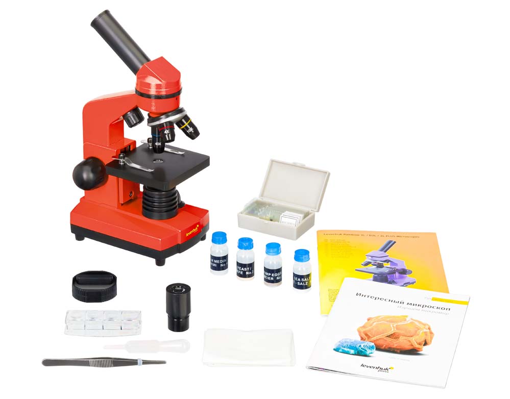 Levenhuk Rainbow 2L Orange – микроскоп, в комплект входит все, что может понадобиться начинающему исследователю, – от подробного руководства до необходимых инструментов. Levenhuk Rainbow 2L Orange\Апельсин станет прекрасным подарком для любознательного подростка – в отличие от обычных биологических микроскопов, эта модель изготовлена в ярком и стильном корпусе сочного апельсинового цвета.