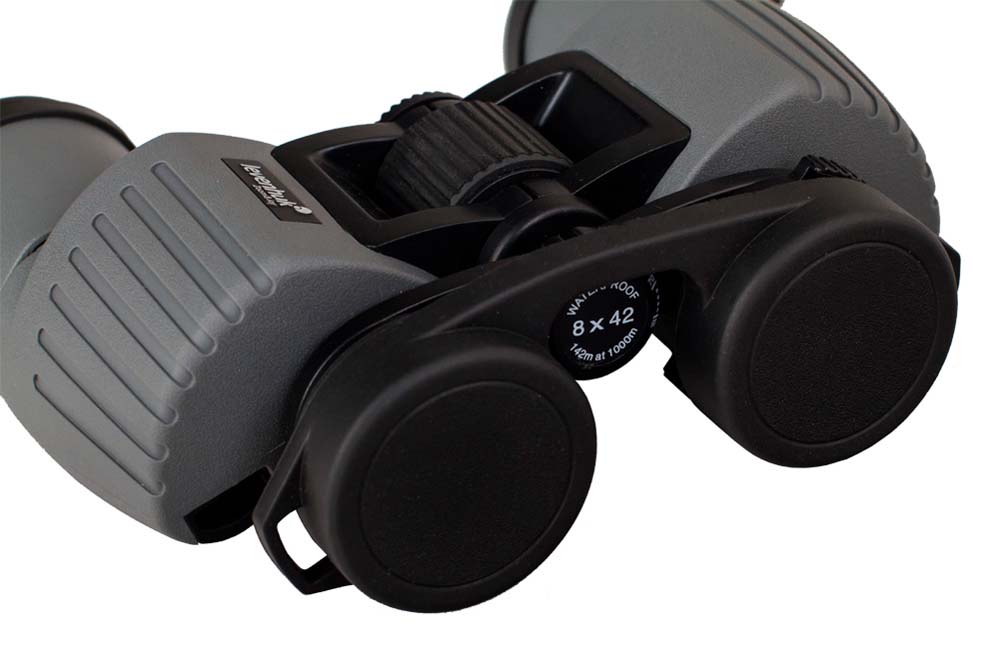 Герметичный корпус не пропускает влагу, грязь и пыль. Levenhuk Sherman PLUS 8x42 полностью водонепроницаем. Чтобы бинокль не скользил в руках, корпус покрыт рельефной светло-серой резиновой оболочкой.