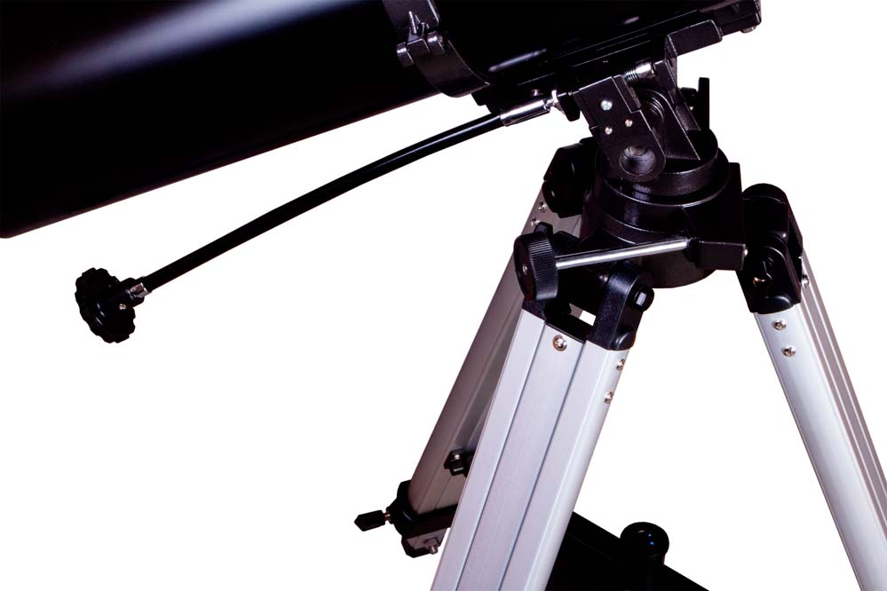 Телескоп комплектуется азимутальной монтировкой. Для наведения на объект нужно лишь развернуть оптическую трубу в нужную сторону. Благодаря простому управлению Levenhuk Skyline BASE 110S понравится тем, кто только делает первые шаги в исследовании космоса и ищет легкий в освоении телескоп. Монтировка устанавливается на алюминиевую треногу, высоту ножек которой можно регулировать. Есть лоток для аксессуаров.Одна из основных особенностей этой модели – сбалансированная комплектация. Два разнофокусных окуляра и линза Барлоу позволяют добиться оптимальных увеличений, на которых можно изучать разные объекты космоса. Для рассматривания протяженных дипскай-объектов рекомендуется выбирать малую кратность, а для исследования планет – высокую. Для максимального упрощения процесса наведения оптической трубы в комплект поставки включен оптический искатель с 6-кратным увеличением.