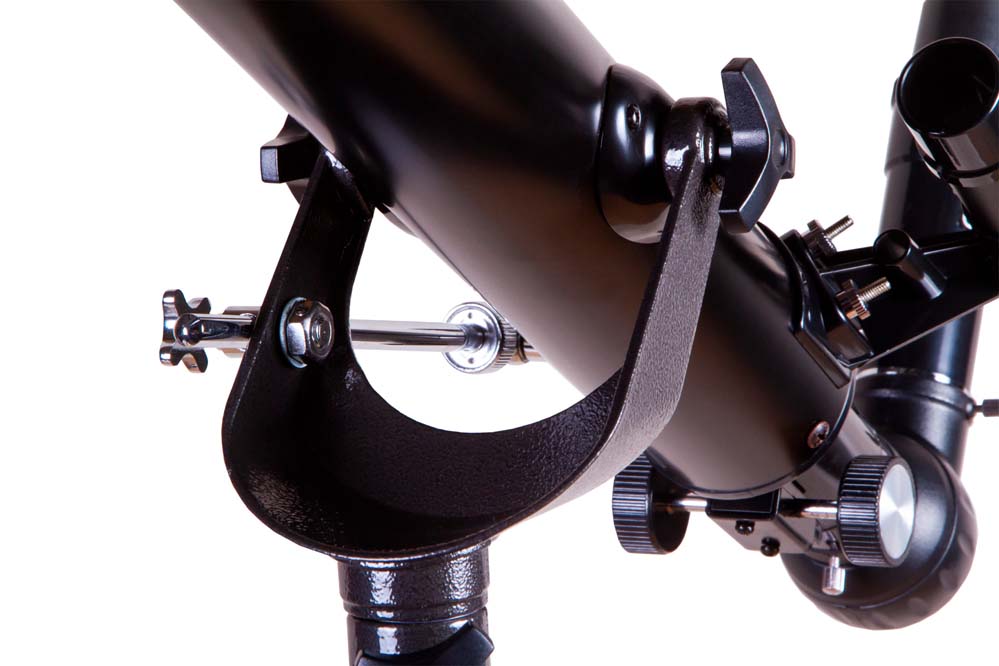 Внутри телескопа установлена стеклянная оптика с полным просветлением. Линзы передают четкое и контрастное изображение, не мутнеют со временем, хорошо работают по тусклым объектам. Оптическая труба установлена на азимутальную монтировку. Для ее освоения требуется совсем немного времени – управление телескопом быстро освоит даже ребенок. В поиске объектов на небосклоне или горизонте помогает и оптический искатель. Он идет в комплекте с телескопом и дает 5-кратное увеличение.