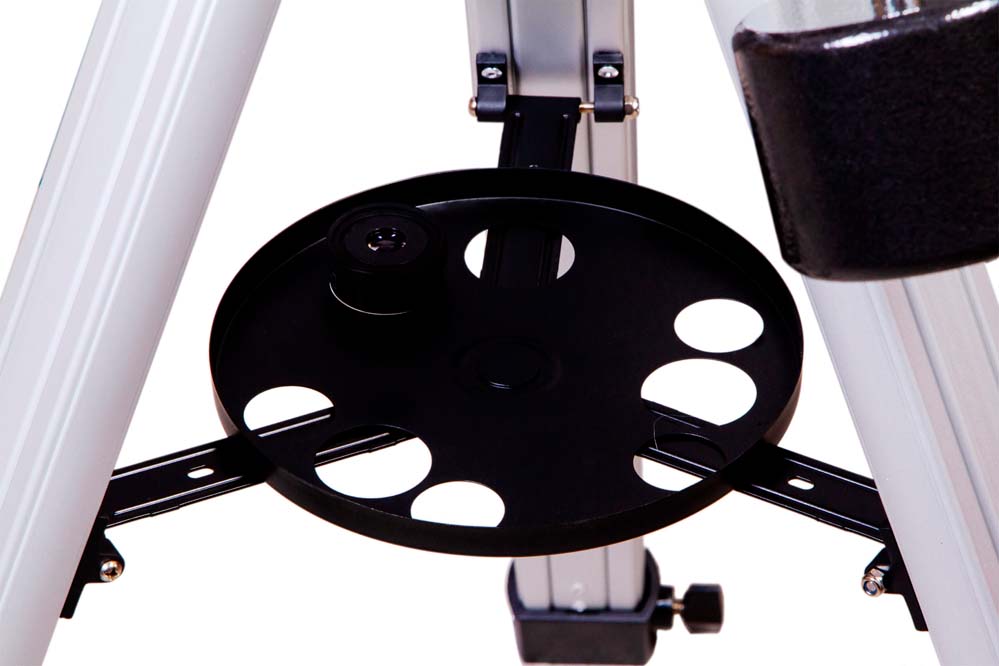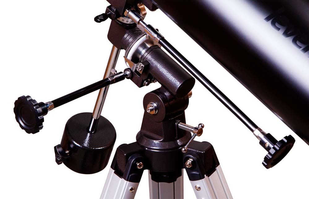Телескоп подойдет и начинающим, и опытным любителям астрономии. Он установлен на монтировку экваториального типа, которая позволяет быстро наводиться на интересующие вас объекты и не терять их из виду даже во время длительных наблюдений. На освоение управления требуется время, но амбициозный новичок вряд ли посчитает это препятствием. Монтировка крепится к алюминиевой треноге, высоту ножек которой можно регулировать. Есть лоток для аксессуаров.В комплект поставки включены необходимые для наблюдений аксессуары – приобретать дополнительные не понадобится. Здесь есть два разнофокусных окуляра и двукратная линза Барлоу. С их помощью легко подобрать оптимальное увеличение для изучения разных объектов космоса. Искатель оптический и дает 6-кратное увеличение.