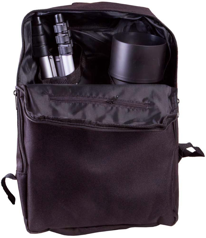 Комплектация телескопа позволяет приступить к наблюдениям сразу после покупки. Кроме того, в комплект входит удобный фирменный рюкзак. В него поместятся и сам телескоп, и все необходимые аксессуары.