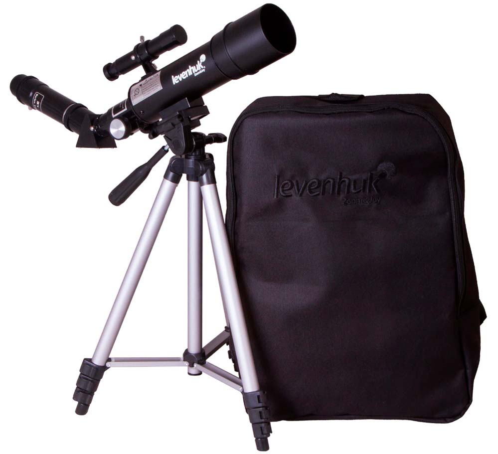Levenhuk Skyline Travel Sun 50 – универсальный телескоп для путешествий и прогулок. Компактный рефрактор подойдет начинающим астрономам любого возраста. С его помощью можно наблюдать планеты Солнечной системы и Луну, телескоп удобен и для наземных наблюдений – он комплектуется диагональной призмой. Она передает прямое, неперевернутое изображение, а также изгибает оптическую ось телескопа и позволяет комфортно наблюдать объекты, расположенные высоко над горизонтом.