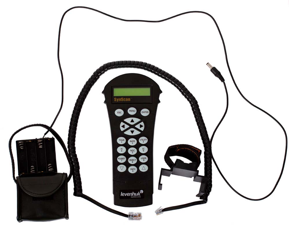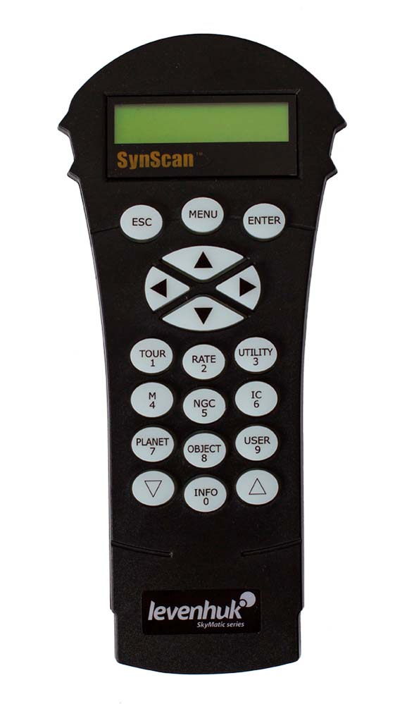 Levenhuk SkyMatic 105 GT MAK: оптика, конструкция, управлениеАзимутальная монтировка с автонаведением очень проста в управлении, которое осуществляется с помощью пульта управления с системой SynScan AZ. Наведение на интересующие объекты звездного неба не требует никаких специальных знаний и опыта – телескоп все делает сам. В базе контроллера содержится информация о координатах и основных свойствах более чем 42 000 объектов.
