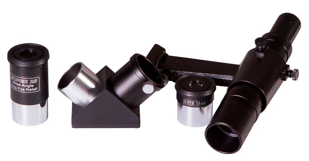 Телескоп Levenhuk 105 GT MAK серии SkyMatic также можно подключить к компьютеру и управлять им с помощью распространенных программ-планетариев. С телескопом поставляются 2 окуляра с фокусными расстояниями 10 мм и 25 мм – они дают увеличения 130х и 52х. Линзы окуляров изготовлены из стекла и имеют многослойное просветление. Фокусировка осуществляется подвижкой главного зеркала, ход фокусера плавный и точный. Посадочный диаметр под окуляры стандарта 1,25" (31,75 мм) позволяет использовать с телескопом множество других имеющихся на рынке окуляров, помимо входящих в комплект. С их помощью увеличение телескопа может быть поднято до полезного предела в 200 крат.