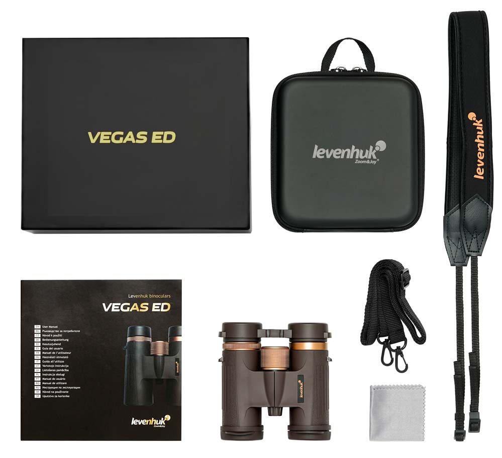Бинокль Levenhuk Vegas ED 8x32 построен на базе roof-призм и четырехэлементных окуляров. Оптические элементы сделаны из низкодисперсионного ED-стекла, а линзы защищены несколькими слоями просветления. Оптика передает четкую и контрастную картинку без цветовых и геометрических искажений, обеспечивает передачу яркого изображения даже в пасмурную погоду. Требовательный пользователь несомненно оценит оптические возможности Levenhuk Vegas ED 8x32.Корпус заполнен азотом и защищен от проникновения воды. Линзы бинокля не запотевают даже при резкой смене температуры, например при выходе из хорошо отапливаемого помещения на мороз. Конструкция выдерживает кратковременное (до 3 минут) погружение в воду на глубину до 1,5 метров. Дождь, снег и грязь не навредят биноклю, и он продолжит работать даже в экстремальных условиях. Ударопрочный и нескользящий пластик, из которого сделан корпус, защитит оптику при случайных падениях и обеспечит надежный захват оптического прибора.
