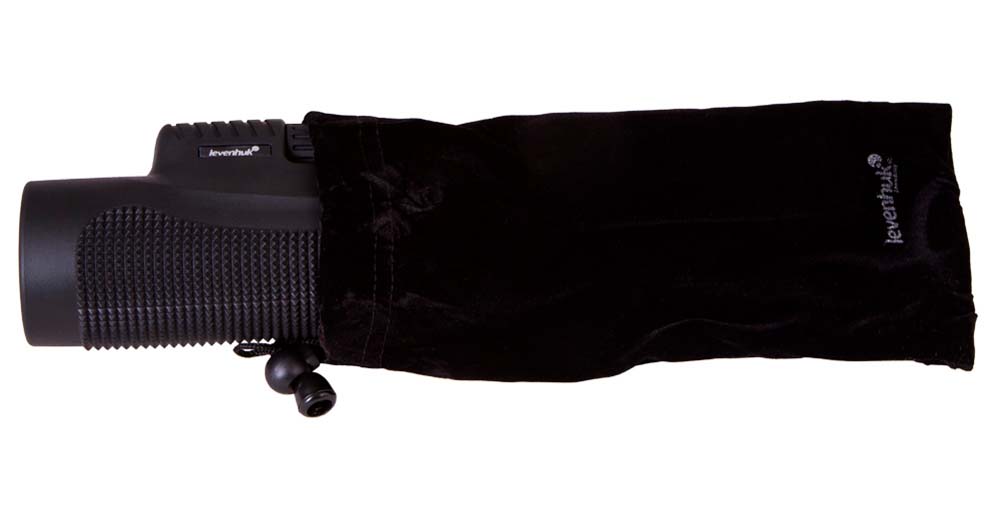 Для защиты от падений на жесткий грунт или асфальт корпус бинокля полностью покрыт резиной. Частицы мелкой пыли и брызги воды не нанесут ущерба оптической схеме. Для удобства наблюдений в очках монокуляр имеет поворотно-выдвижной наглазник. Колесо фокусировки расположено в центре. Оно позволяет быстро настраивать резкость монокуляра и фокусироваться на объектах, находящихся на разном удалении от наблюдателя.