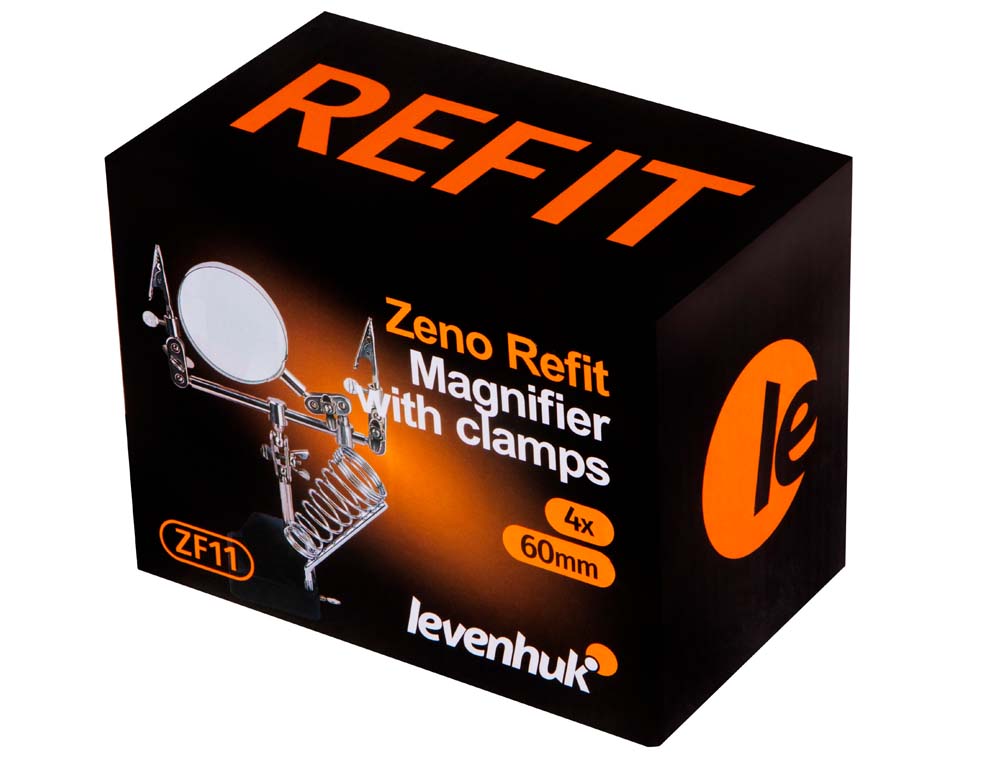 Levenhuk Zeno Refit ZF11 – лупа на штативе, оптический инструмент с держателями, который отлично подойдет для ювелирной, часовой или ремонтной мастерской. В домашних условиях лупу можно использовать для рукоделия и творчества. Благодаря наличию пары держателей лупа позволяет оставить обе руки свободными для работы с небольшими деталями – сборки, разборки, покраски, пайки и других манипуляций. Фиксация предметов производится с помощью зажимов-прищепок.