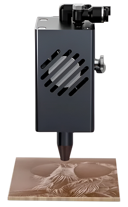 Лазерный модуль мощностью 10 Вт отлично подходит для резки фанеры до 8 мм и четкой сверхтонкой гравировки на твердых поверхностях. Рабочая зона 300х210 мм, а скорость гравировки до 20 000 мм/мин.