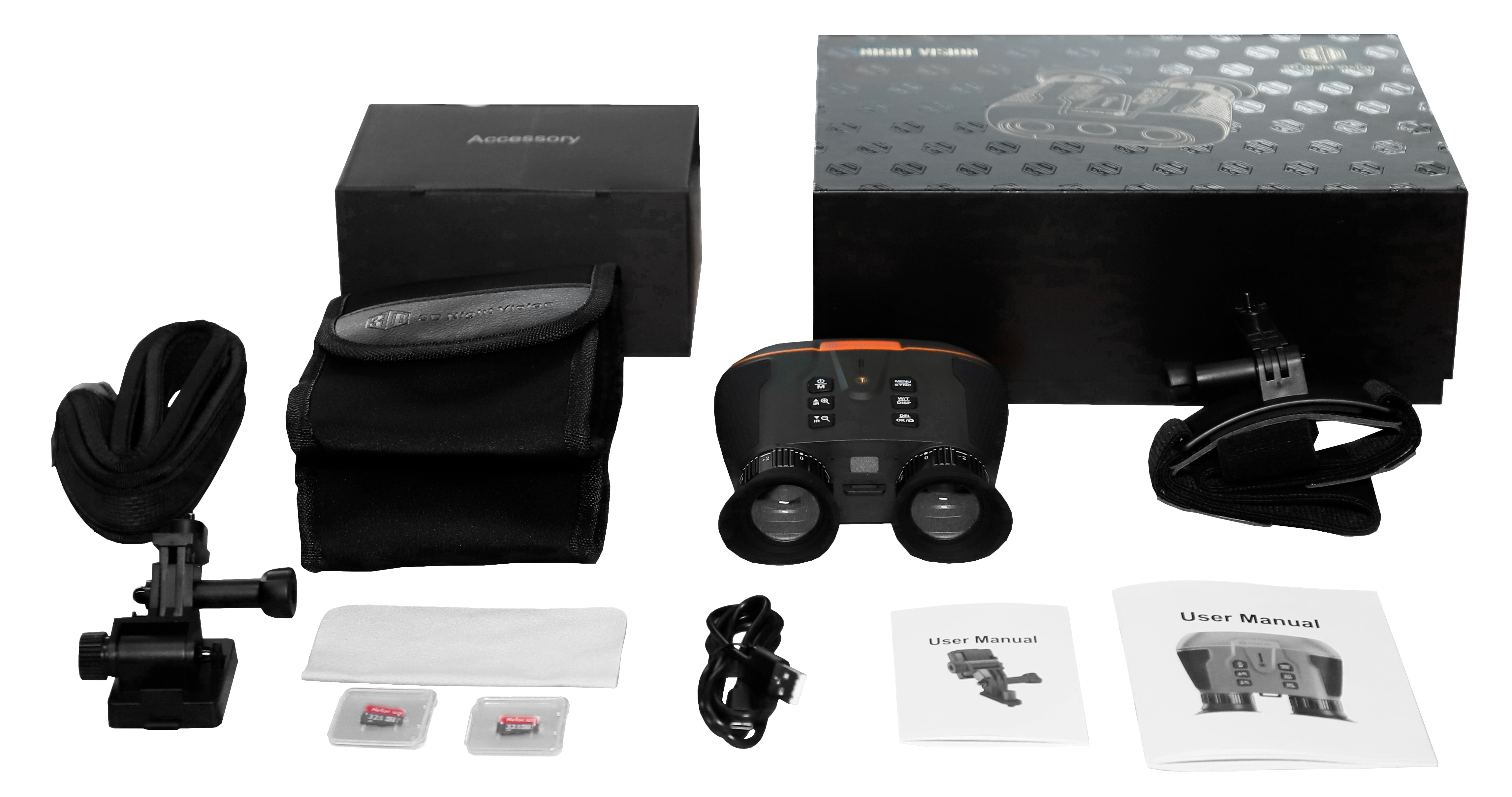 Бинокуляр, Крепление на голову, Крепление на шлем, Ремешок, Кабель USB Type-C, Сумка, Карта памяти 32 ГБ - 2 шт., Салфетка, Инструкция по эксплуатации |
