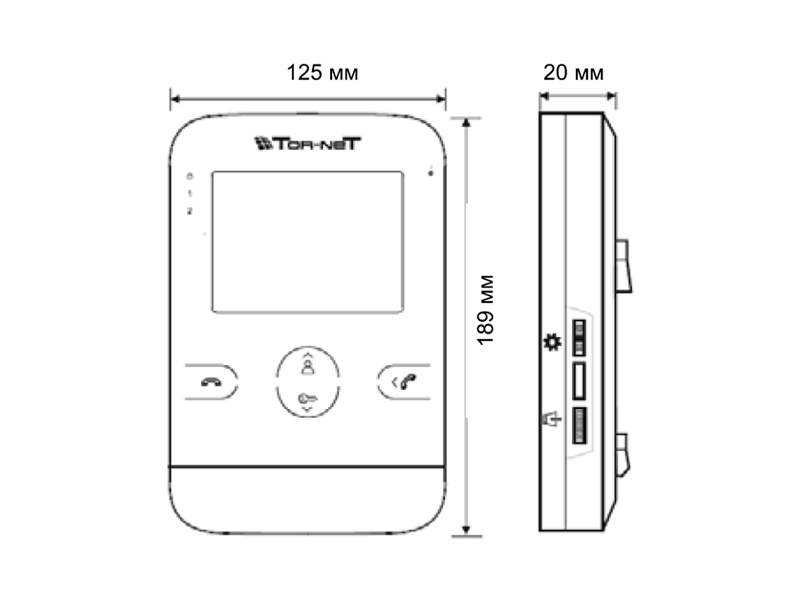 Есть возможность вывода изображения на телевизор или аналоговый монитор. Предусмотрена функция интеркома с передачей видеосигнала от вызывной панели. К видеодомофону Tornet можно подключить до двух вызывных панелей и одну дополнительную видеокамеру.